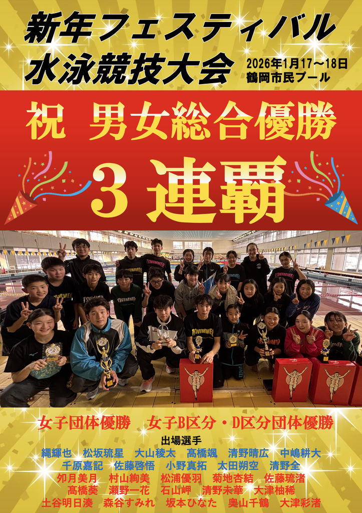 その結果、当スクール創立40年で初の男女総合優勝3連覇を果たすことができました!おめでとうございます!!