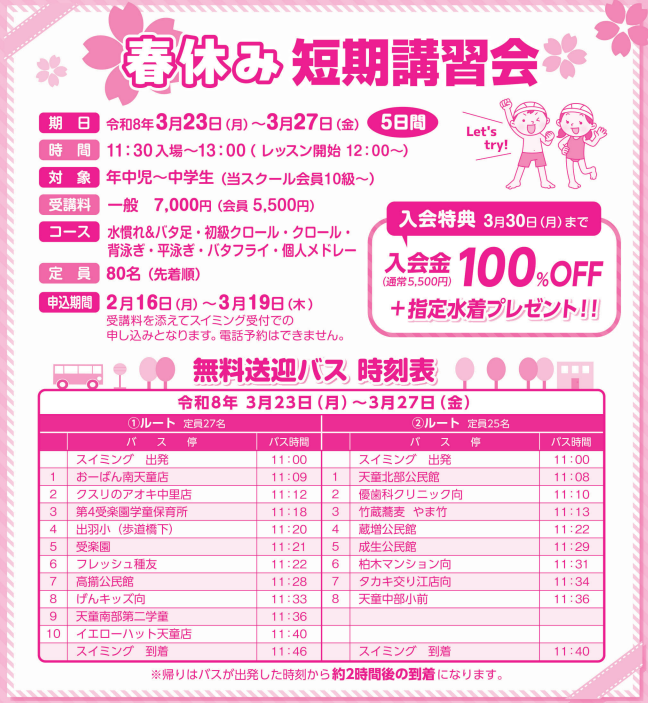 入会金0円(通常5,500円) + スイミング指定水着プレゼント!